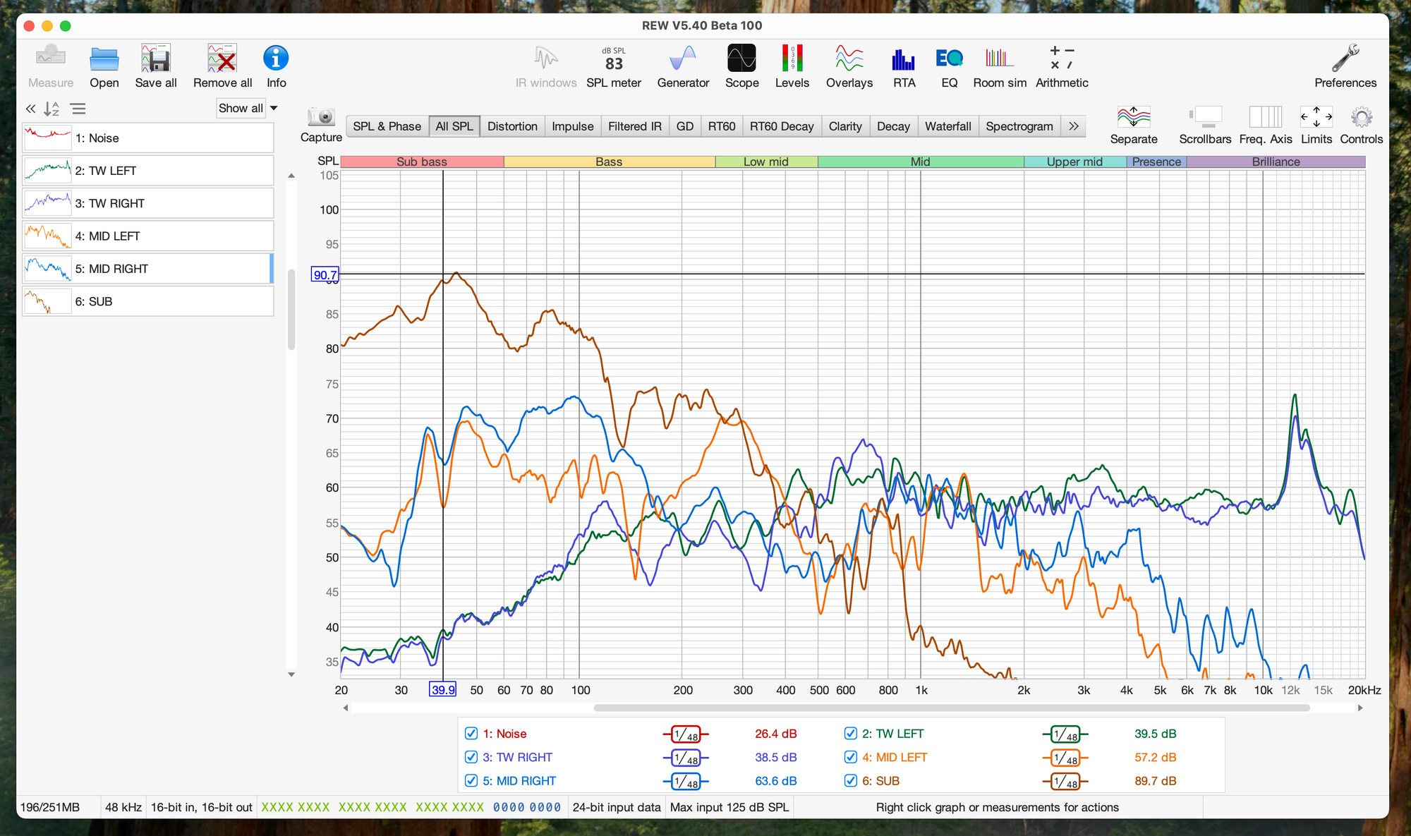Я выполнил замеры всех отдельных динамиков в своей системе: