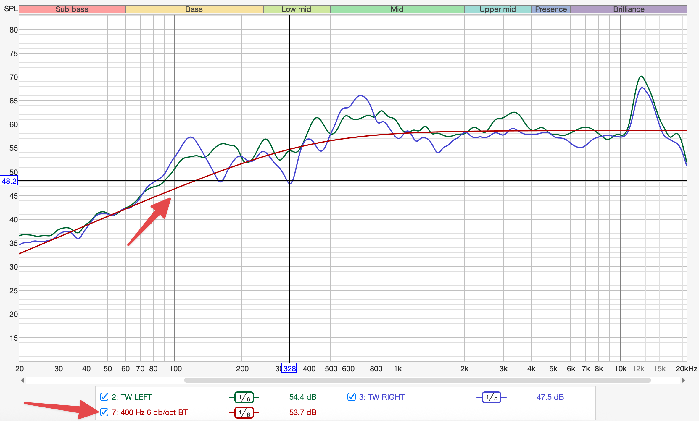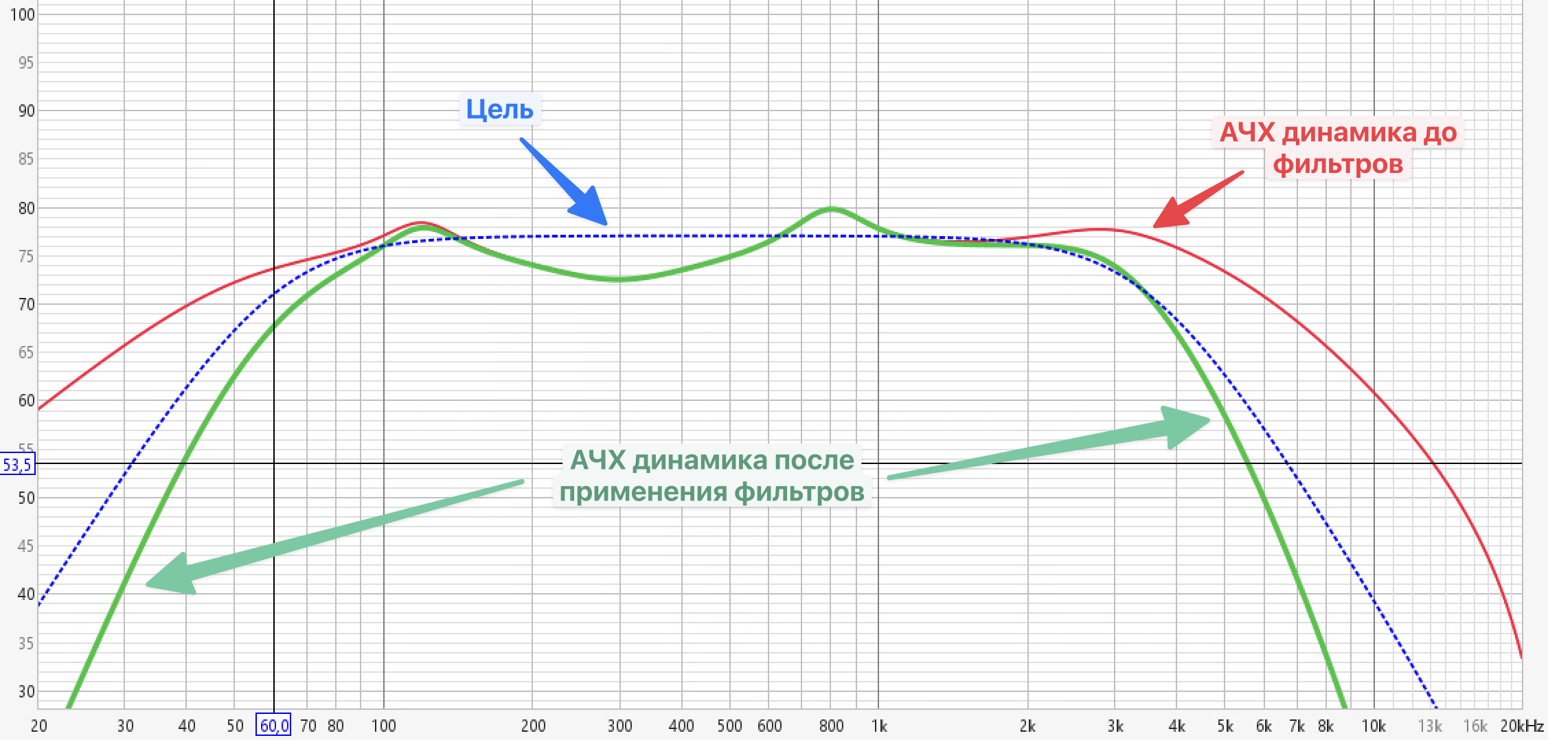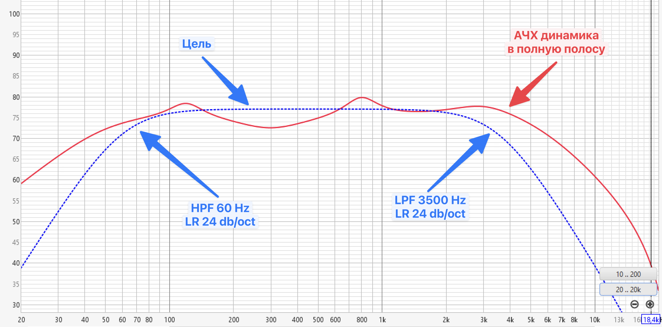 Целевые кривые - это ориентир и наша целевая АЧХ, отнсительно которой мы будем выполнять подбор электрических фильтров кроссовера и выполнять эквализацию.