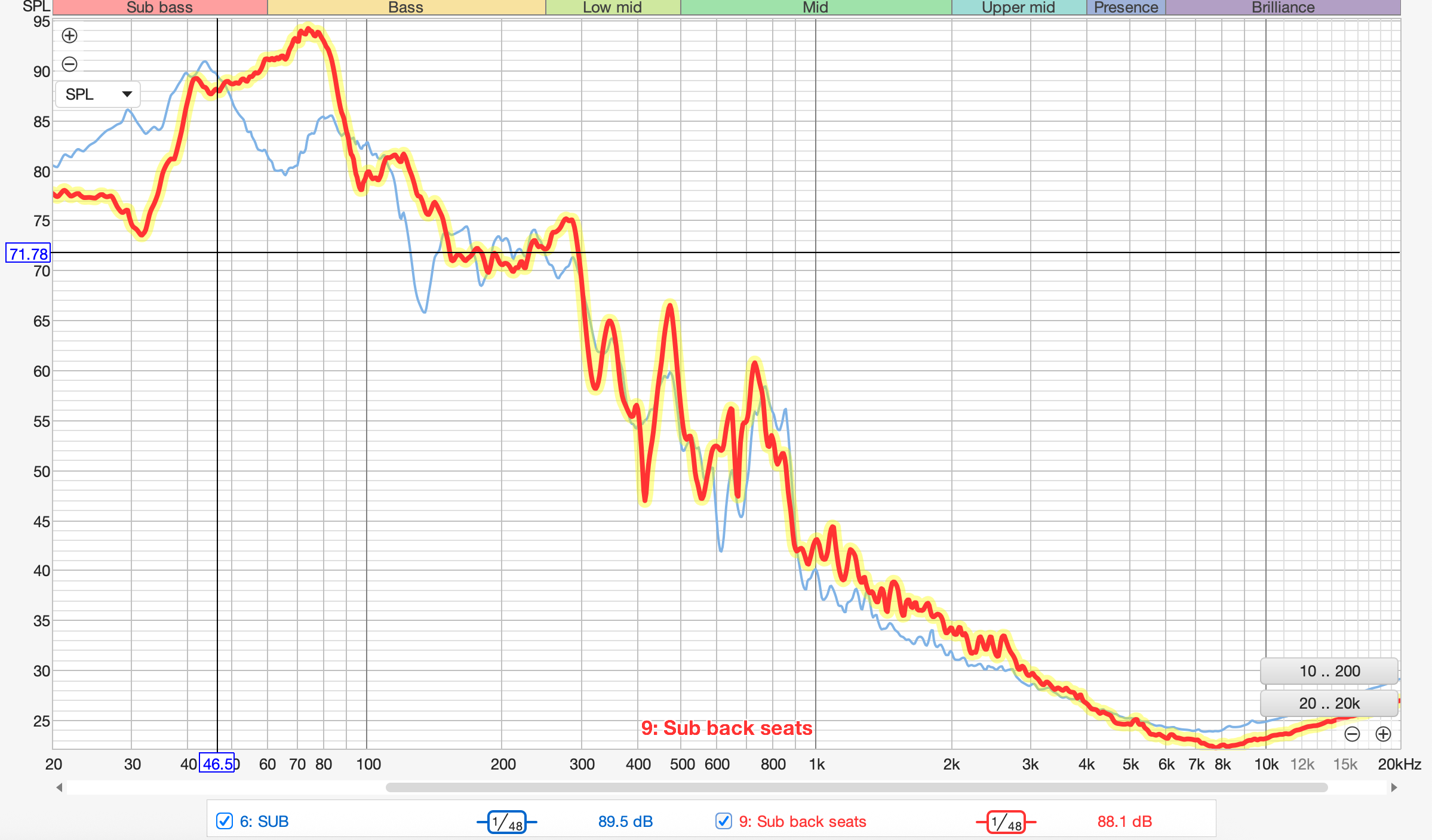 Вот например каков график этого же саба со стороны заднего сиденья по центру, чуть дальше подголовников назад: