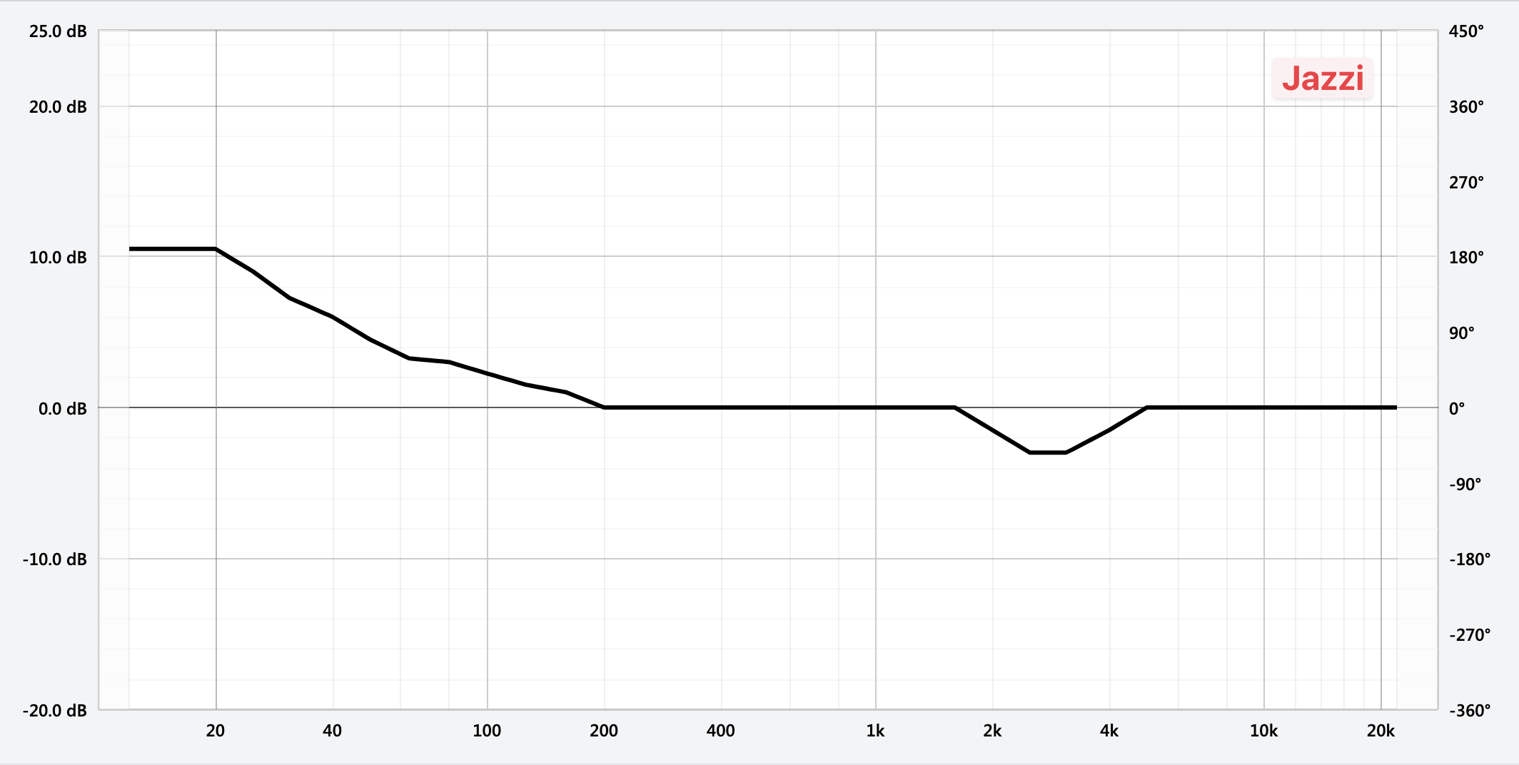 В Jazzi's Tuning Companion можно также создавать и использовать свои кривые, в соответсвии со своими предпочтениями, в виде кривых Custom 1 / Custom 2 / Custom 3 (необходимо ввести свои значения уровня на диапазона частот: